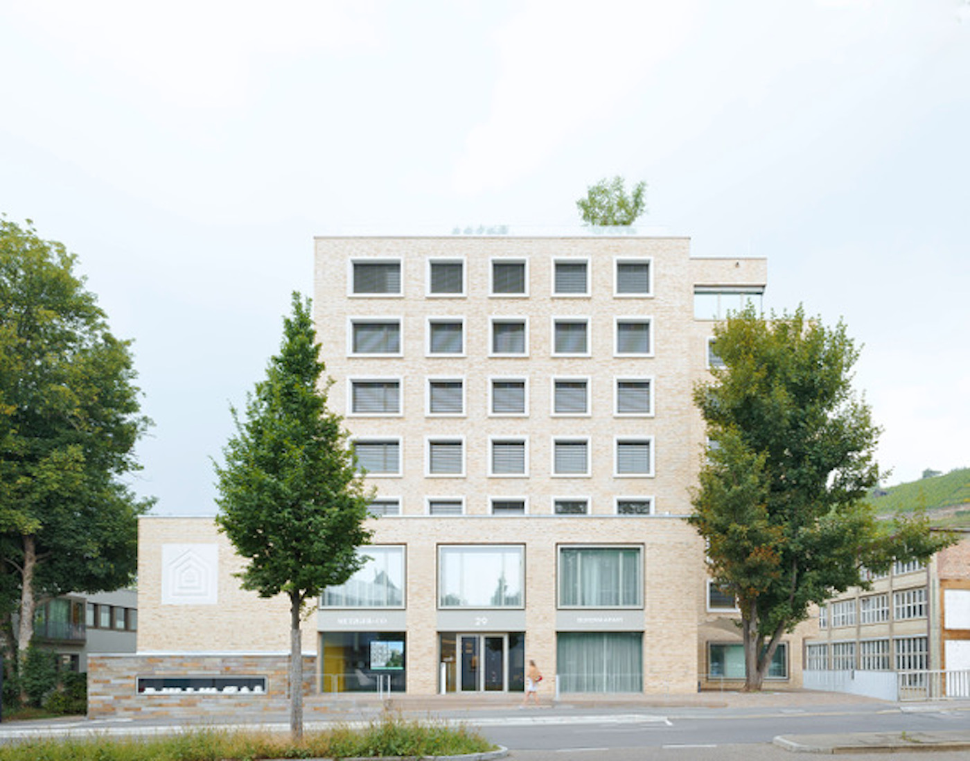 Das bestehende 8-geschossige Hochhaus am Roßneckar, 1960 als Studentenwohnhaus errichtet, ist umfassend neugestaltet und um einen 5-geschossigen Erweiterungsbau samt Tiefgarage ergänzt. In den unteren beiden Ebenen entstehen Büroflächen des Projektentwicklers, darüber 1-2 Zimmer-Appartements, die als „Boarding House“ kurzzeitig an Businesskunden vermietet werden. Ein Appartement als Dachaufbau steigert die Vertikale.
