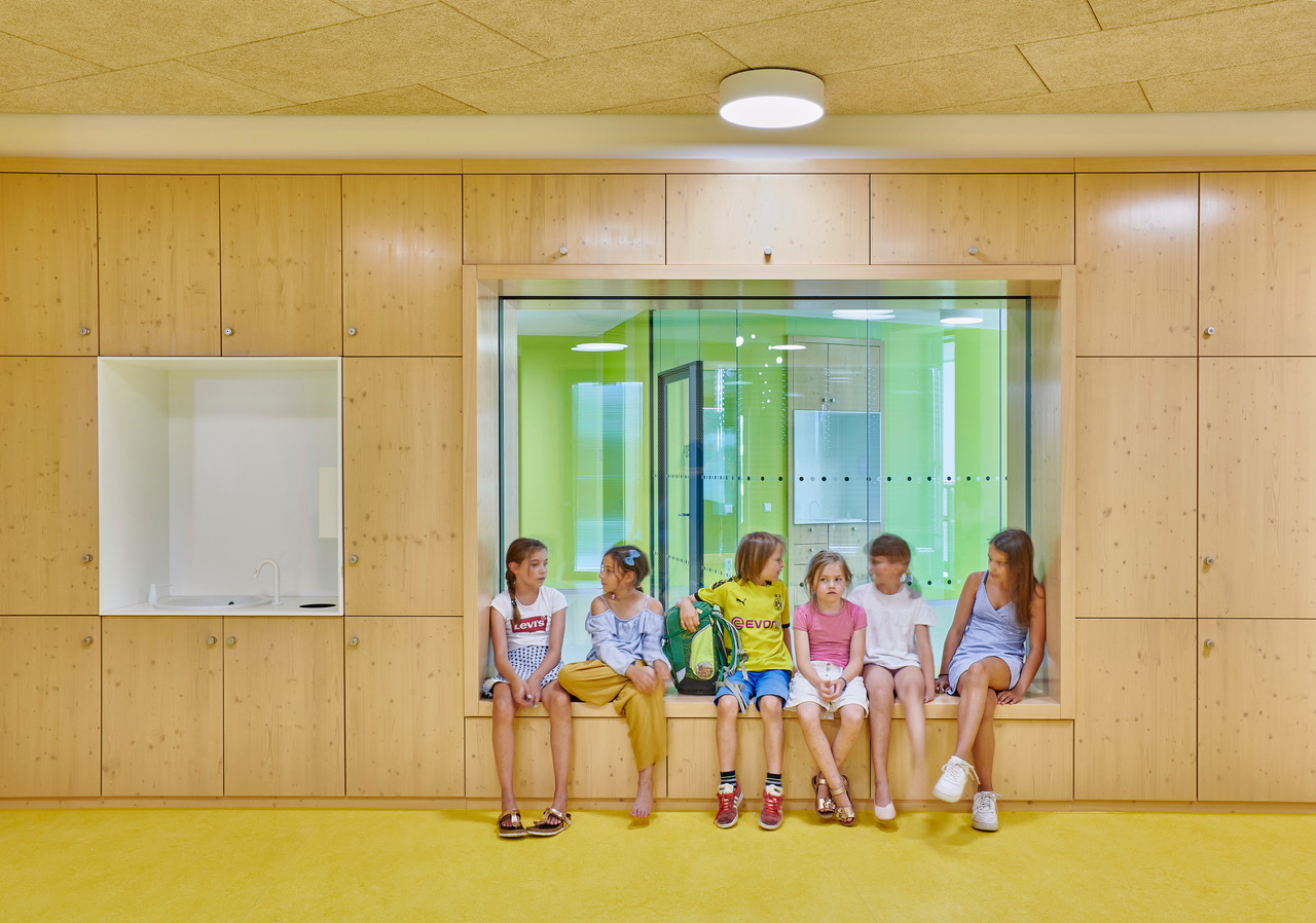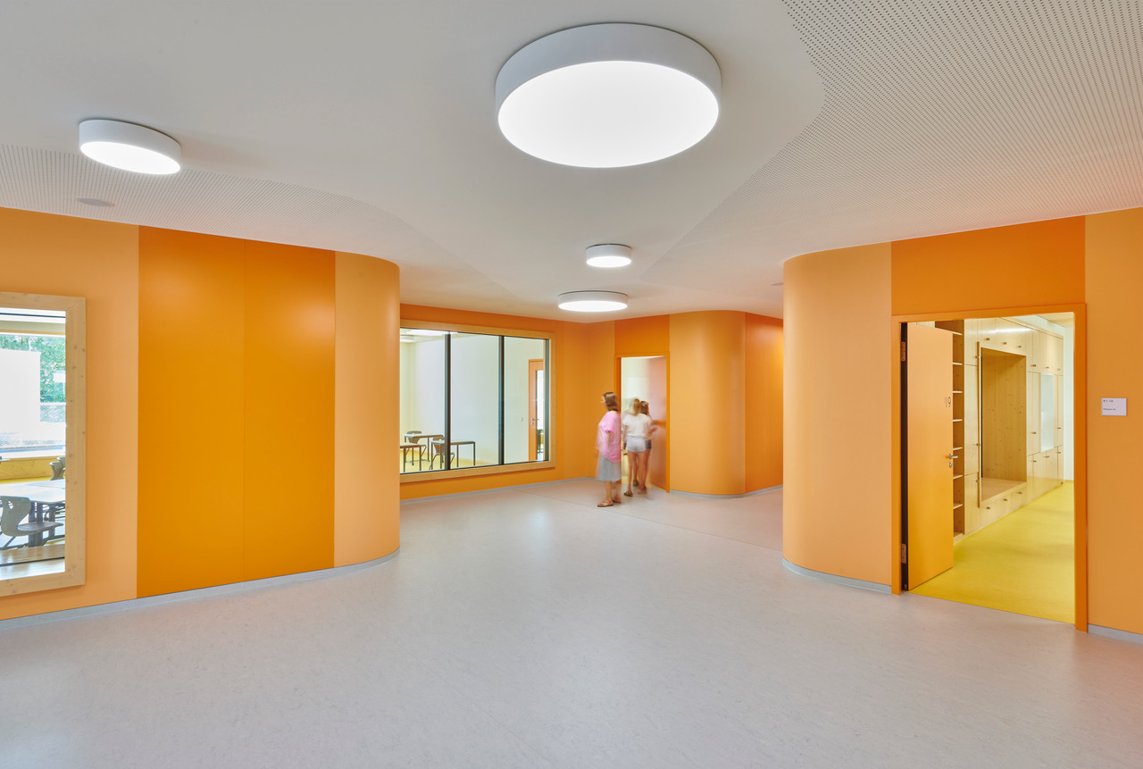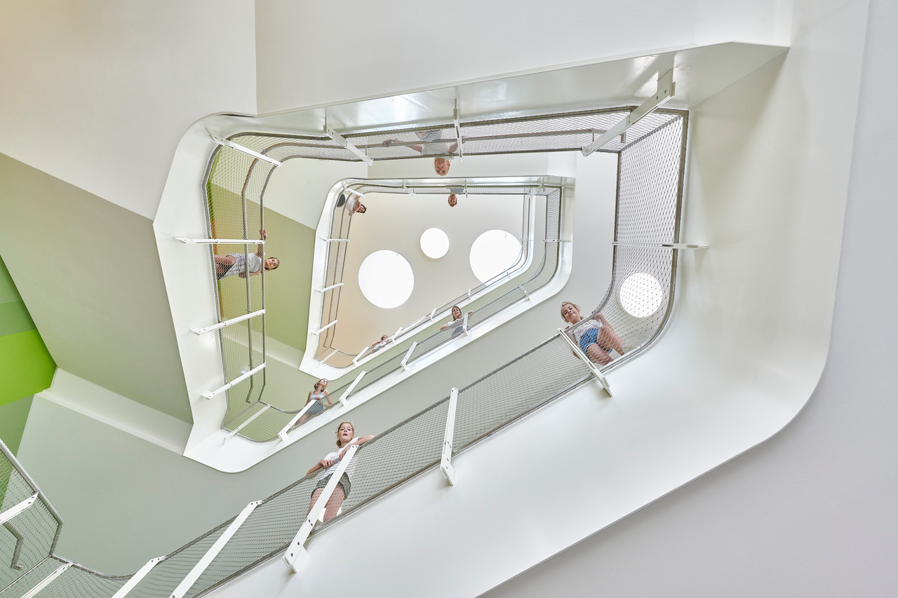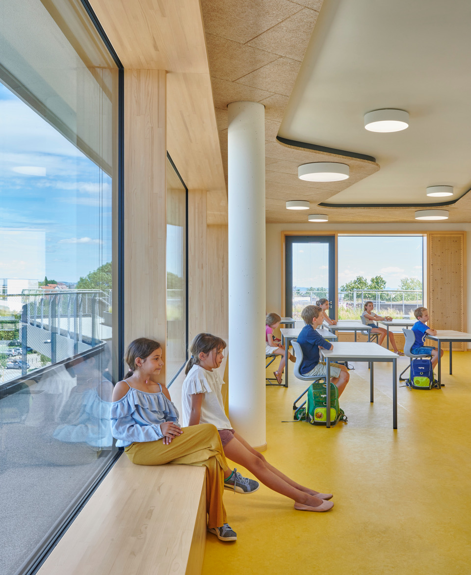 Frei gestaltete Lernebenen mit umlaufenden Balkonen prägen das äußere Erscheinungsbild. Nach verlängerter Bauzeit stehen zum Schuljahresbeginn 2020 die Baulichkeiten für ein neues pädagogisches Konzept zur Verfügung.
