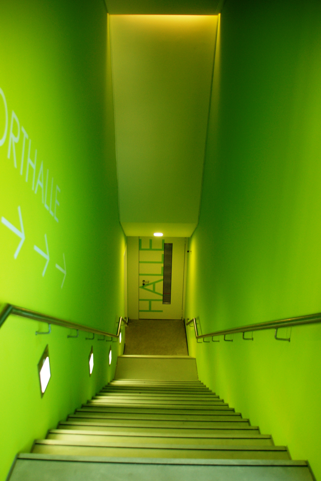 Die multifunktionalen Anforderungen an die Saalnutzung und die hochwertige gebäudetechnische Ausstattung bestimmen den Innenausbau.