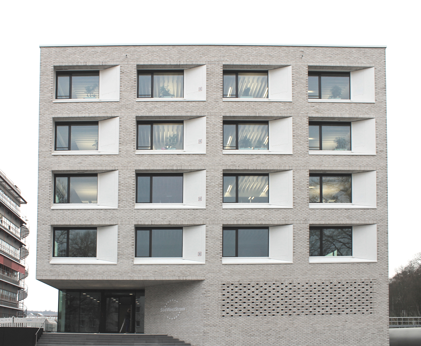Der Neubau auf dem Gelände der Stadtwerke bildet den Sitz der neugegründeten Südwestdeutschen Stromhandelsgesellschaft.