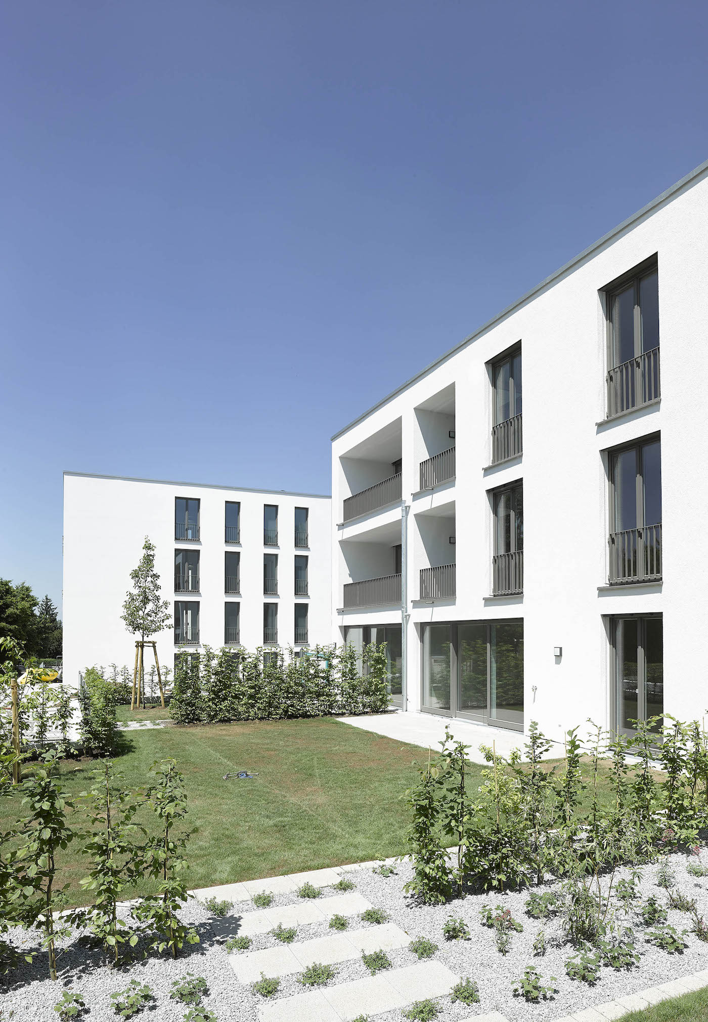 Die Kleinsiedlung umfasst 28 Wohneinheiten als Miet- und Eigentumswohnungen. Jeweils paarweise gruppierte Kuben bilden eine Reihung fast gleichartiger Bauten, die durch Staffelung zur Straße geschützte Eingangszonen entstehen lassen. Über den jeweils zwei Häusern zugeordneten Tiefgaragen sind Hausgärten angelegt.