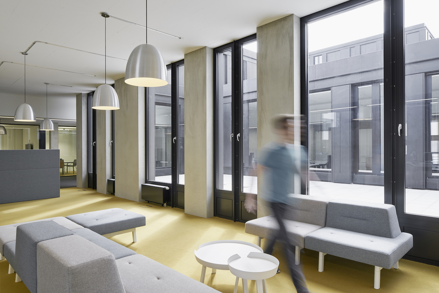 Um drei Atrien gruppieren sich in der Höhe gestaffelt Hallen, Technika und Büros für ca. 320 Mitarbeiter zu einem kommunikativen Ort der Forschung. Bestimmungsgemäß kommen neueste Energietechnologien wie Photovoltaik an Fassade und Dach sowie Geothermie zum Einsatz. Die Komplexität des Bauprogramms mit extrem hohem Technikanteil fand seinen Niederschlag in der ausgedehnten Bauzeit.